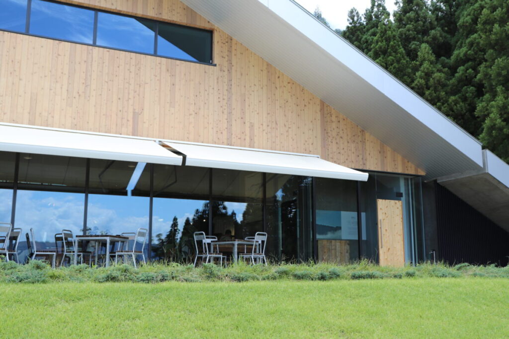 建物前のテラス席的なところ(上の建物写真参照)に座り、緑鮮やかな風景を見ながらビールをいただく