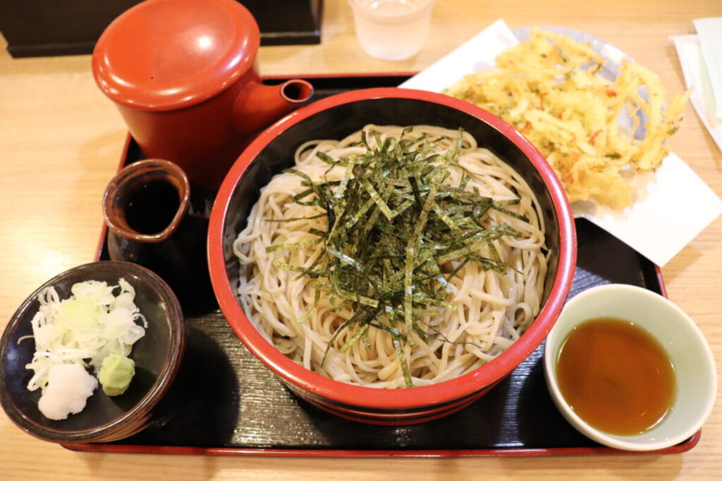 写真を見ると、野菜の天ぷら複数個付きのざる蕎麦で、間違いなく美味しそうである