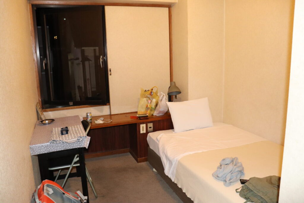 先述の満員電車で、駅周辺を散策する気力は残っていなかったので、駅前のローソンで酒&菓子をさっと購入して、足早にホテルへ向かう