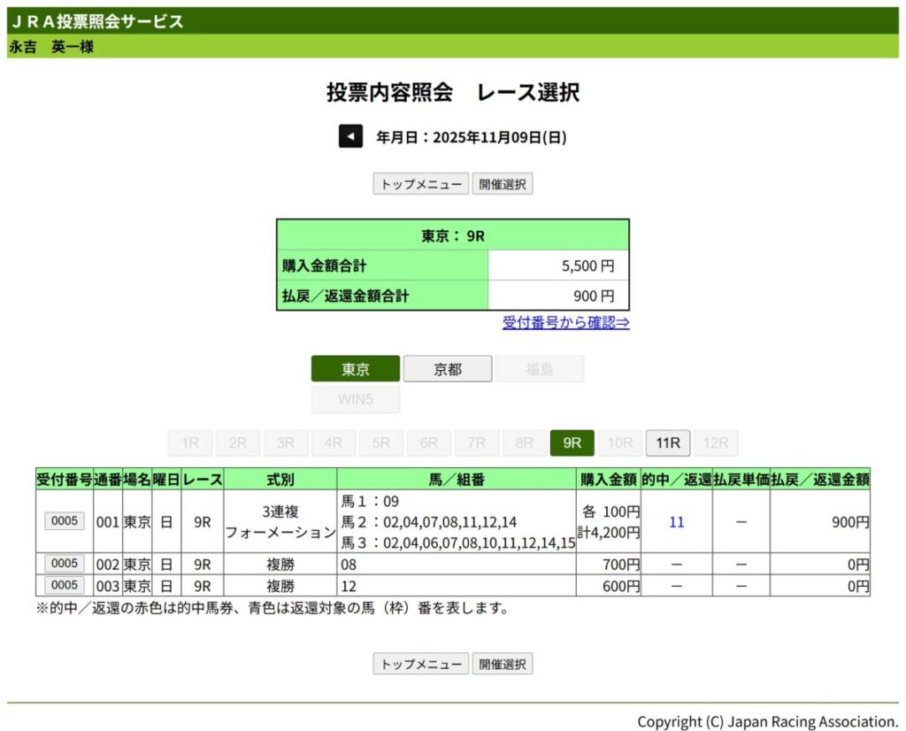 ちなみに、9月末の中山競馬場スプリンターズS指定席も落選しており、2025年の関東で行われた秋GⅠレースは、現地観戦を果たせていない